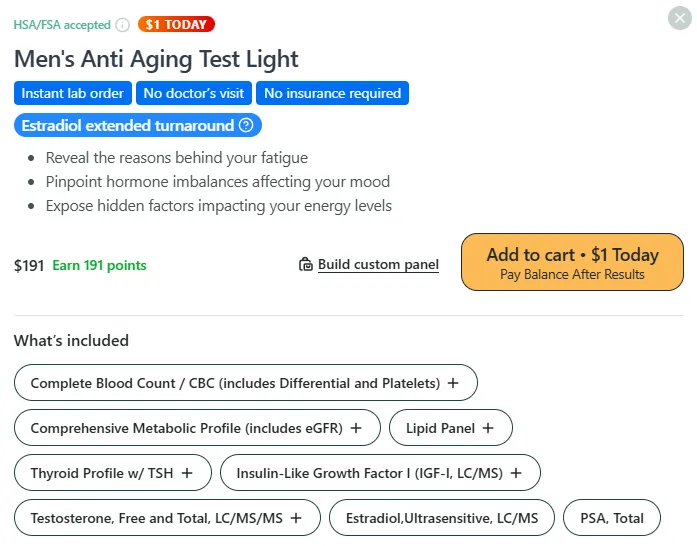 Men's Comprehensive Testosterone Test ($159)